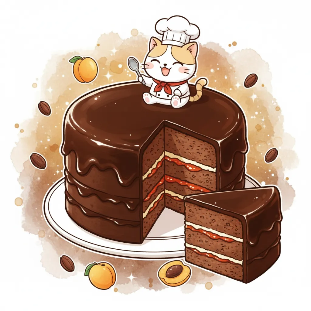 • Sachertorte, 90, schokoladig und elegant, Zutaten: Zartbitterschokolade, Butter, Marillenmarmelade, Eier, Mehl,